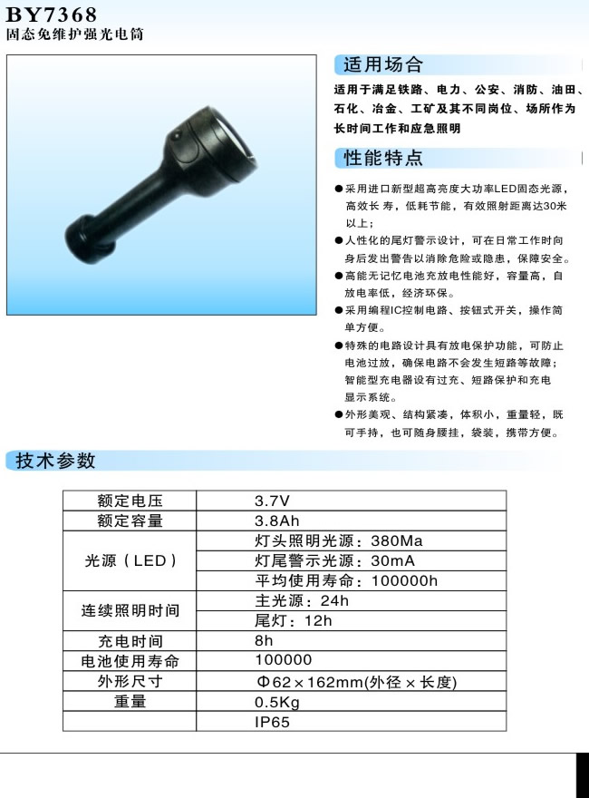 ->BY7368固態(tài)免維護強光電筒